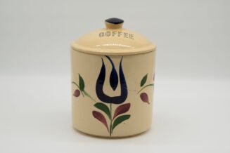 Authentic Watt Pottery Dutch Tulip #82 coffee canister in base is mint – lid has chip.
