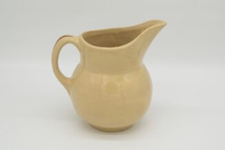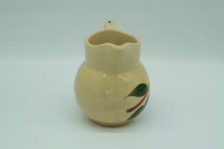 Watt Pottery #62 Double Apple Creamer. Near mint – has what appears to be a factory flaw – small glaze scrap near bottom on back side – not viewable when displaying.