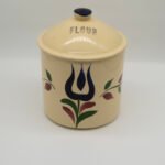 Authentic vintage Watt Pottery Dutch Tulip pattern #81 flour canister.