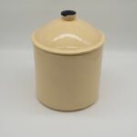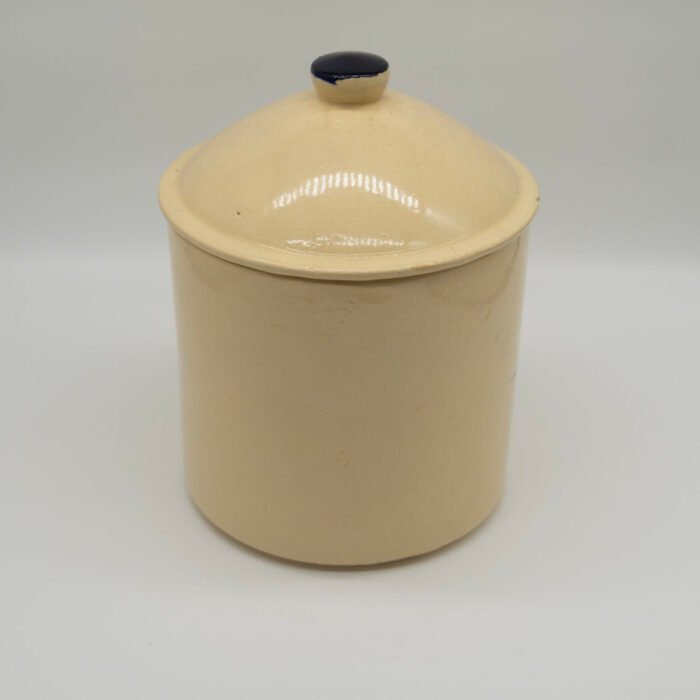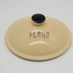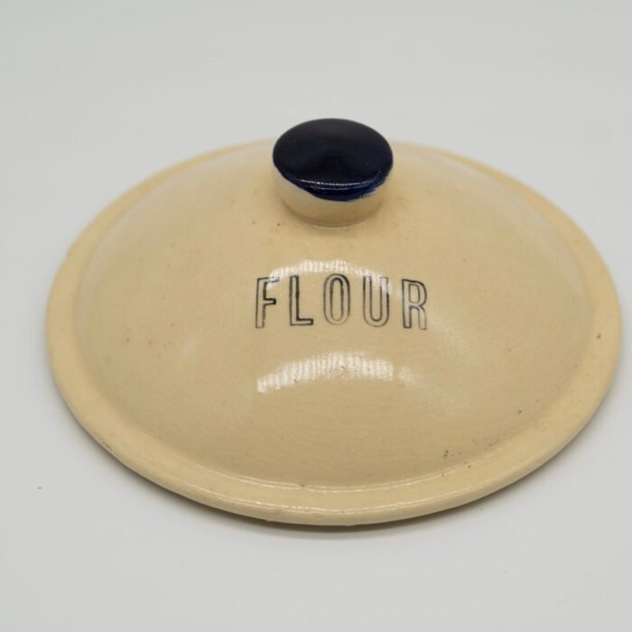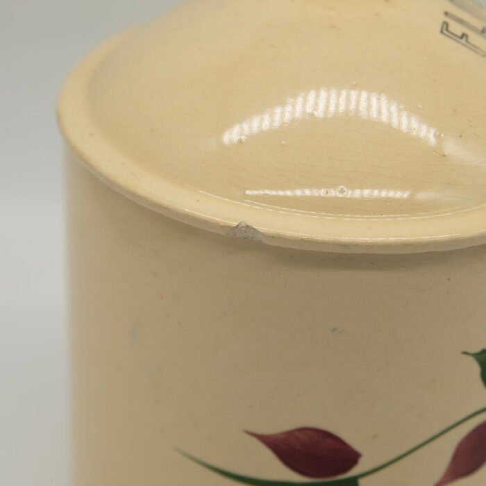 Authentic Watt Pottery Dutch Tulip #81 flour canister in base has a craze line on side – does not show on inside – clean / lid has rim chip.