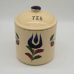 Authentic vintage Watt Pottery Dutch Tulip pattern #82 tea canister.