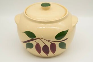 A classic and highly recognizable form within the Teardrop pattern, known for its clean lines and hand-decorated simplicity. Larger forms like the #72 canister are especially desirable for display.