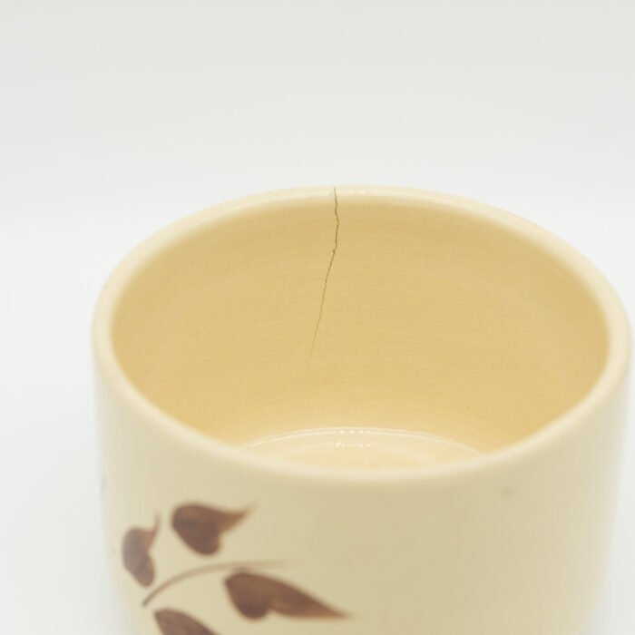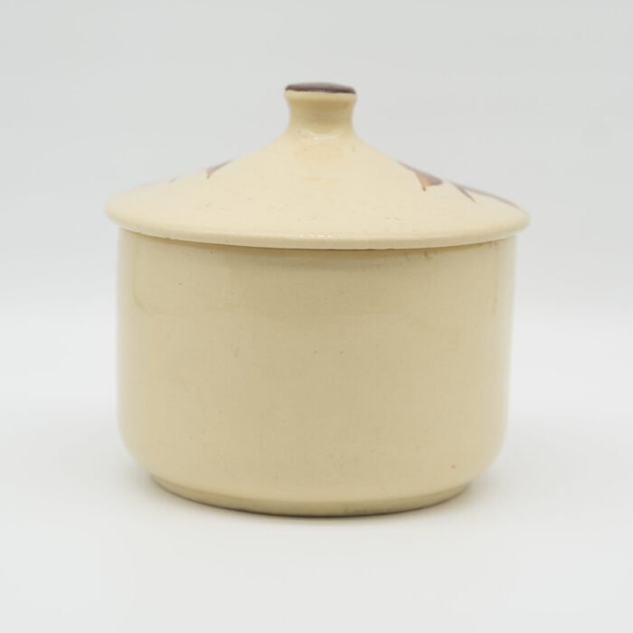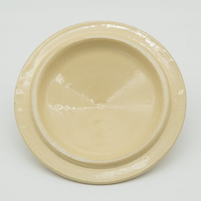 – Condition Notes: I purchased this sight unseen. Don’t do that. The lid is in mint condition. The base is what my lesson you should learn for yourself. It has a inside crack. It appears to have been refired in a kiln. As the outside former crack is now glazed filled. The lid alone is worth the asking price.