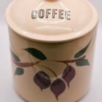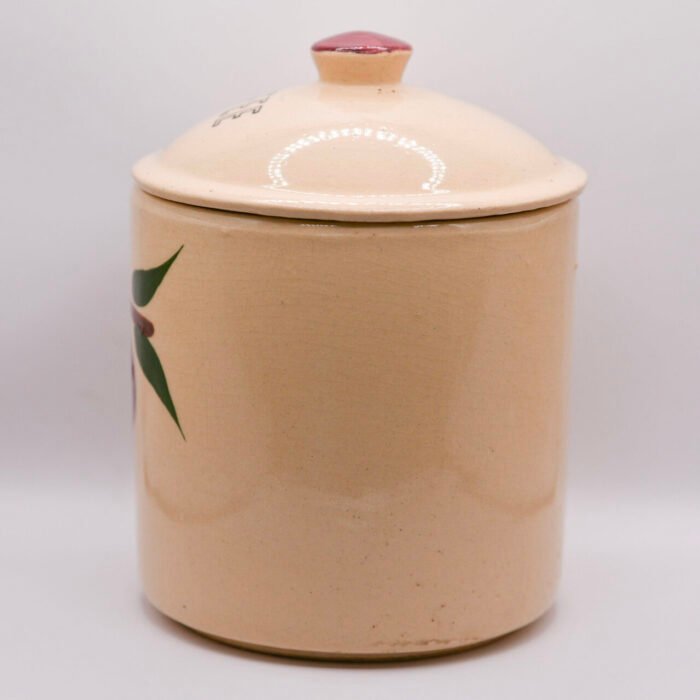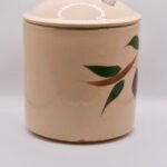 Authentic Watt Pottery Teardrop #82 Canister with strong color and classic hand-painted detail.