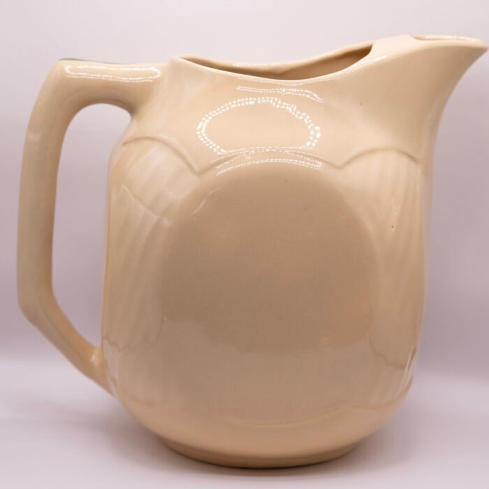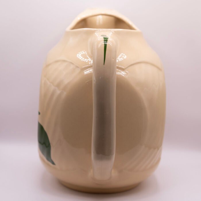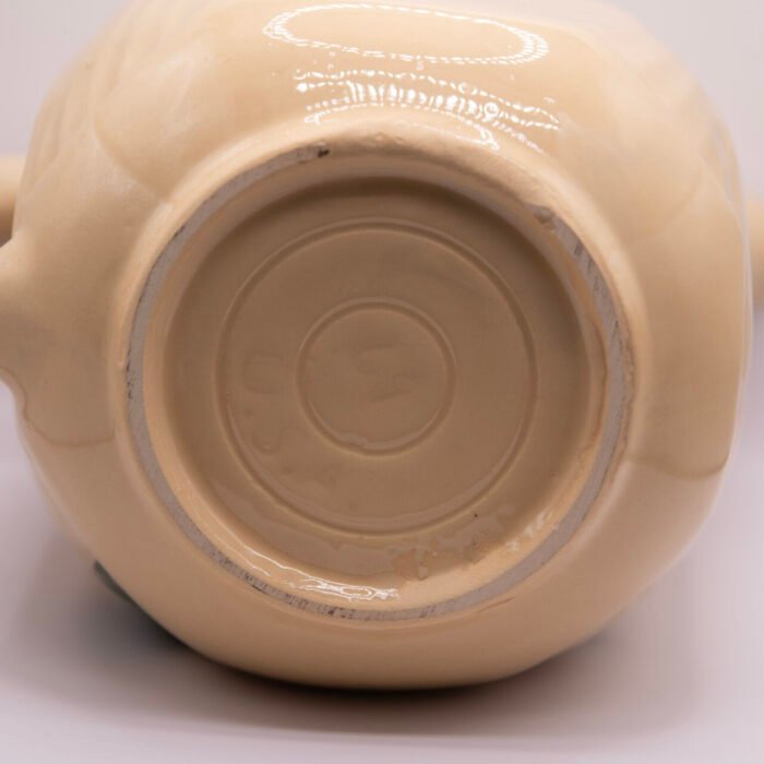 This vintage Watt Pottery Apple #69 Refrigorator Pitcher displays excellent color, clean glaze, and characteristic hand-painted detail. Condition: I wish all my finds could be as good as this one. Super clean, super awesome having no chips cracks or hairlines. Spout is even great. It’s smooth to the touch with a very clean bottom rim. I’m not sure this was ever used.. A wonderful addition for any Watt Pottery collection.