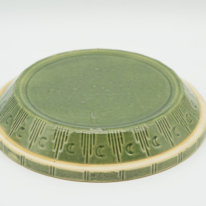Authentic Watt Pottery # Moon & Stars Covered Plate. Condition: This covered plate is in excellent condition. Lid has a very minor nick on the underside rim which could be factory. Base is very close to perfect. Clean solid color no chips cracks or hairlines. Iconic mid-century American pottery with hand-painted detail. Ideal for collectors or display; ships with care.