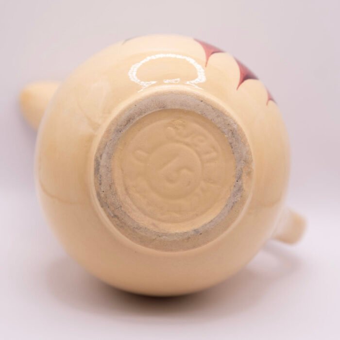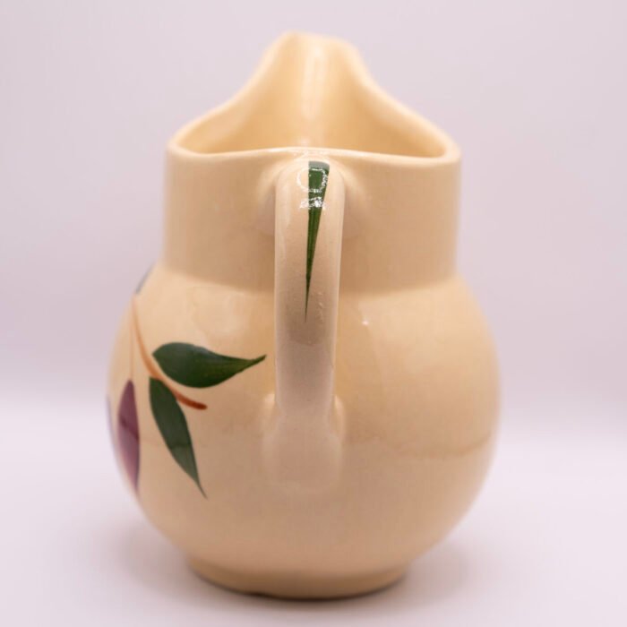 This vintage Watt Pottery Teardrop #15 Pitcher displays excellent color, clean glaze, and characteristic hand-painted detail. Condition: I know these are a common piece to find and add to any collection. But I still like this one. It has a small tiny glaze nick on the back side of the spout as it’s only flaw. Clean inside and out. Nice solid colors and nice addition to a beginning collector.. A wonderful addition for any Watt Pottery collection.