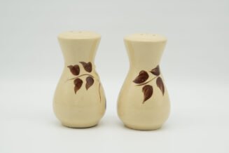 Authentic Watt Pottery #117/118 Autumn Foliage Salt&Pepper. Condition: Really nice set of salt & pepper shakers. Salt is in mint condition. Pepper has a tiny tint litle flaw on the top center hole. Otherwise very nice.. Iconic mid-century American pottery with hand-painted detail. Ideal for collectors or display; ships with care.